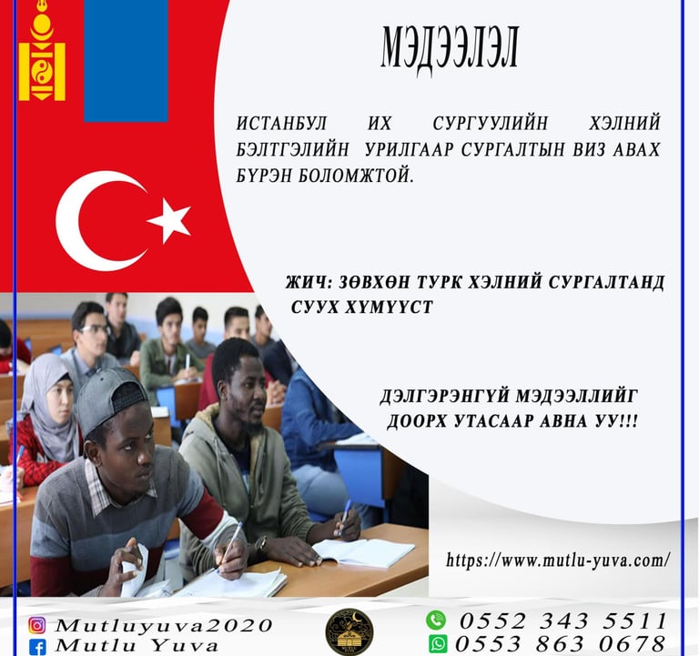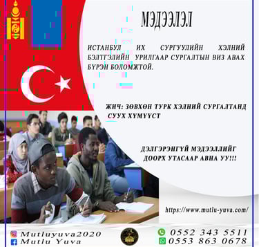 ИСТАНБУЛ ИХ СУРГУУЛИЙН ХЭЛНИЙ БЭЛТГЭЛИЙН УРИЛГААР СУРГАЛТЫН ВИЗ АВАХ БҮРЭН БОЛОМЖТОЙ.