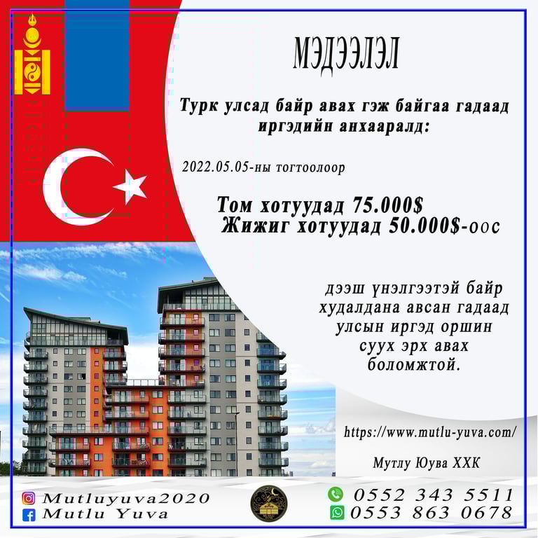 Турк улсад байр авах гэж байгаа гадаад иргэдийн анхааралд: