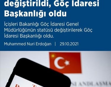 Турк улсын Гадаад Иргэдийн Шилжилт хөдөлгөөний захиргаа нь /Göç idaresi genel müdürulüğü/ статусаа өөрчилж Гадаад Иргэдийн шилжилт хөдөлгөөний Газар /Göç idaresi başkanlığı/) болон өргөжсөнтэй холбогдуулан Гадаадын иргэдийн хаягны асуудлыг чухалчлан ажиллаж олон өөрчлөлт, шинэчлэлтүүд хийгдэж байна.